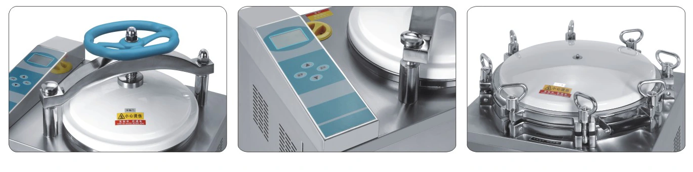 Sterilisasi uap tekanan vertikal dipasang kanthi sistem pemanas, sistem kontrol mikro-komputer, sistem proteksi panas lan liwat tekanan, sing bisa dipercaya kanggo efek sterilisasi, operasi sing trep lan konservasi energi. Cocog kanggo peralatan sterilisasi, dressing, wadhah, cairan, medium budaya, limbah, lsp. institute.
